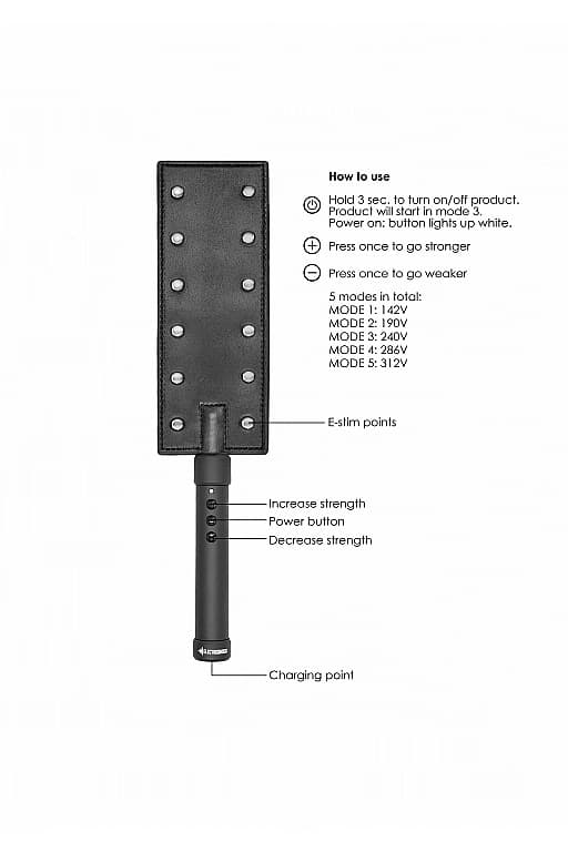 Игрушка имеет 5 различных уровней электростимуляции, что позволяет выбрать богатейший спектр ощущений и воздействий, от лёгкого шевеления мышц до судорог мощнейшего оргазма.Падл снабжен 12 электрическими контактами с обеих сторон, которыми можно управлять с помощью 3 кнопок на ручке девайса.